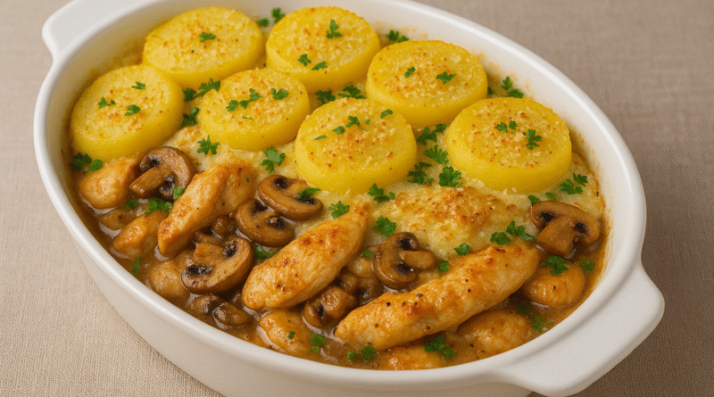 🍗 1. Frango Cremoso ao Molho de Champignon e Batatas Douradas
